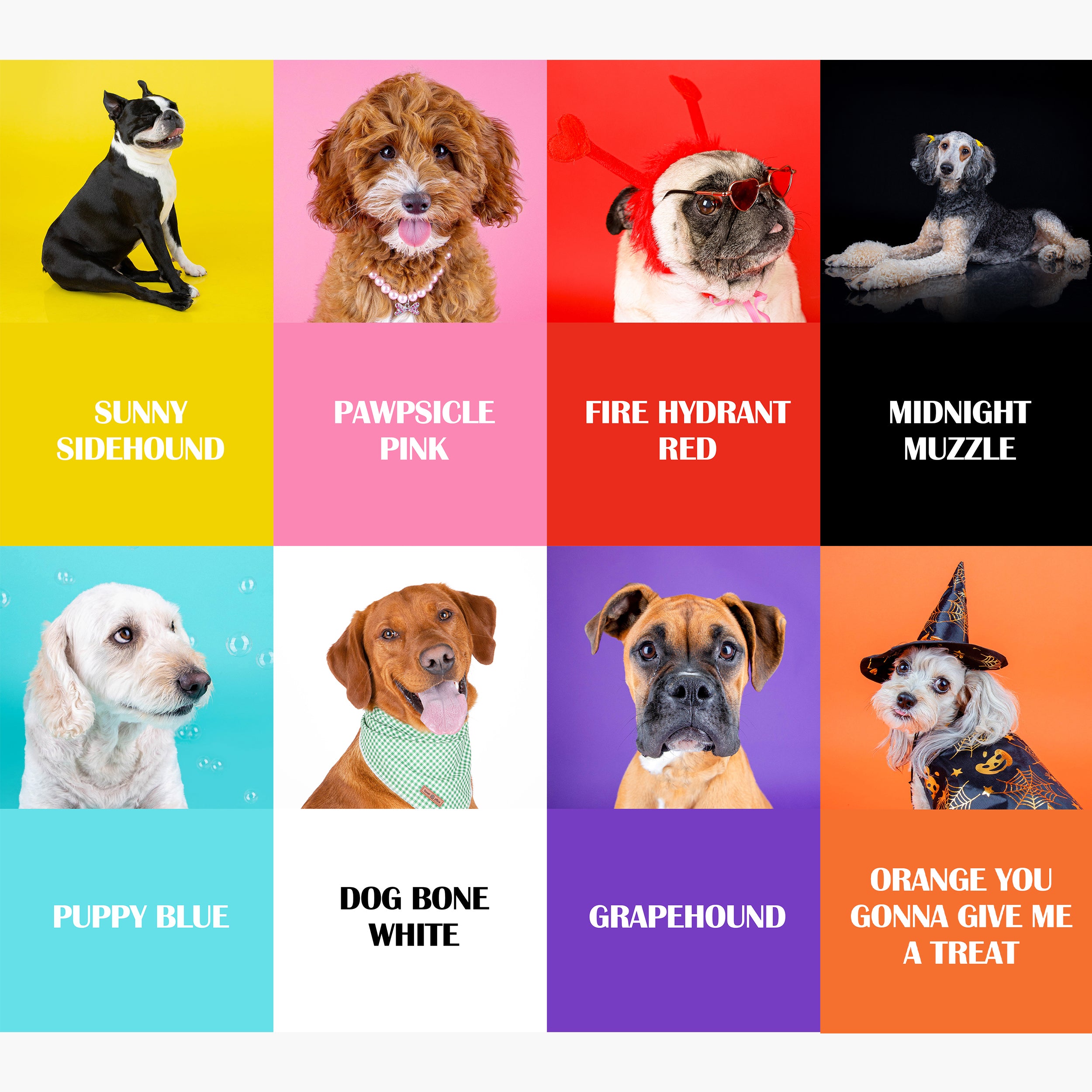 We offer seasonal mini-sessions that are shorter than our full photo experiences. The full photo experience give you more time in the studio which can help your pet feel more comfortable as time passes. The full experience also includes three backdrop color options versus the two colors the mini session includes.
